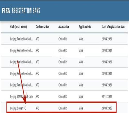 FIFA官方传来消息,北京国安收到一则转会注册的禁令,处罚期无限期,一直到问题解决,才可能解除转会禁令。在此期间,不得操作国际、国内的转会,以及注册新的球员。