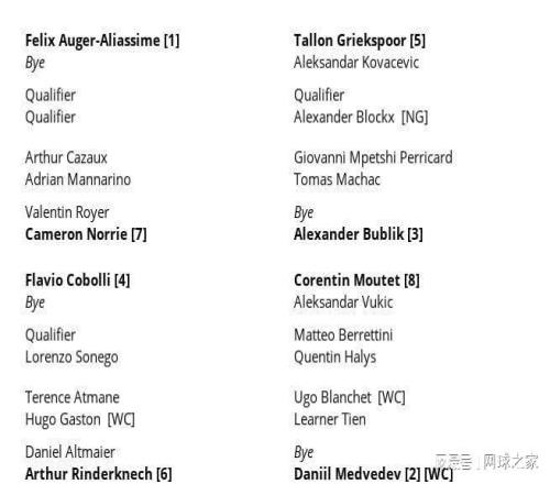 梅斯赛方面,只要夺得巴黎大师赛冠军就将在年终总决赛入围资格的最后时刻弯道超车的阿利亚西姆将继续出征,头号种子直通八强难度不大;和其同分在一个半区的种子球员还有上海大师赛亚军林德克内希、意大利人科波利以及英国人诺里。