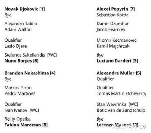 和他分在同一个半区的种子球员还有毛洛桑、博尔赫斯和布兰登中岛。其中,匈牙利人作为八号种子将在首轮对垒美国小巨人奥佩尔卡,而另外一位塞尔维亚选手杰雷则有可能与德约在第三轮对垒。