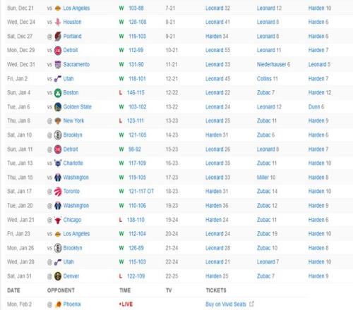 此役拿下胜利后,快船队在过去的21场比赛拿到了17胜4负的傲人战绩,快船同期战绩依旧是联盟第一的存在,快船已经来到23胜25负,快船距离50%的胜率又只差2场了。