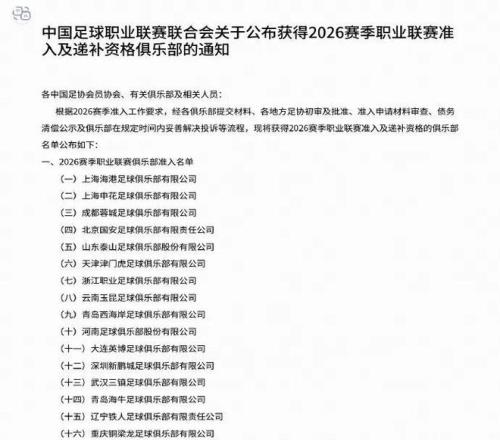 中足联于今日发布了2026赛季三级职业联赛准入结果。上海海港、上海申花、上海赛更达均获得准入资格。