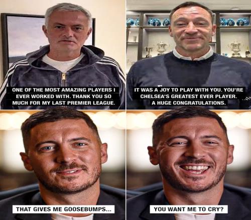 雷速体育10月31日宣 此前英超官方宣布,切尔西传奇球星阿扎尔入选英超名人堂。今天前切尔西主穆里尼奥以及前切尔西队长特里为阿扎尔送上祝福。穆里尼奥在视频中表示:“你是我